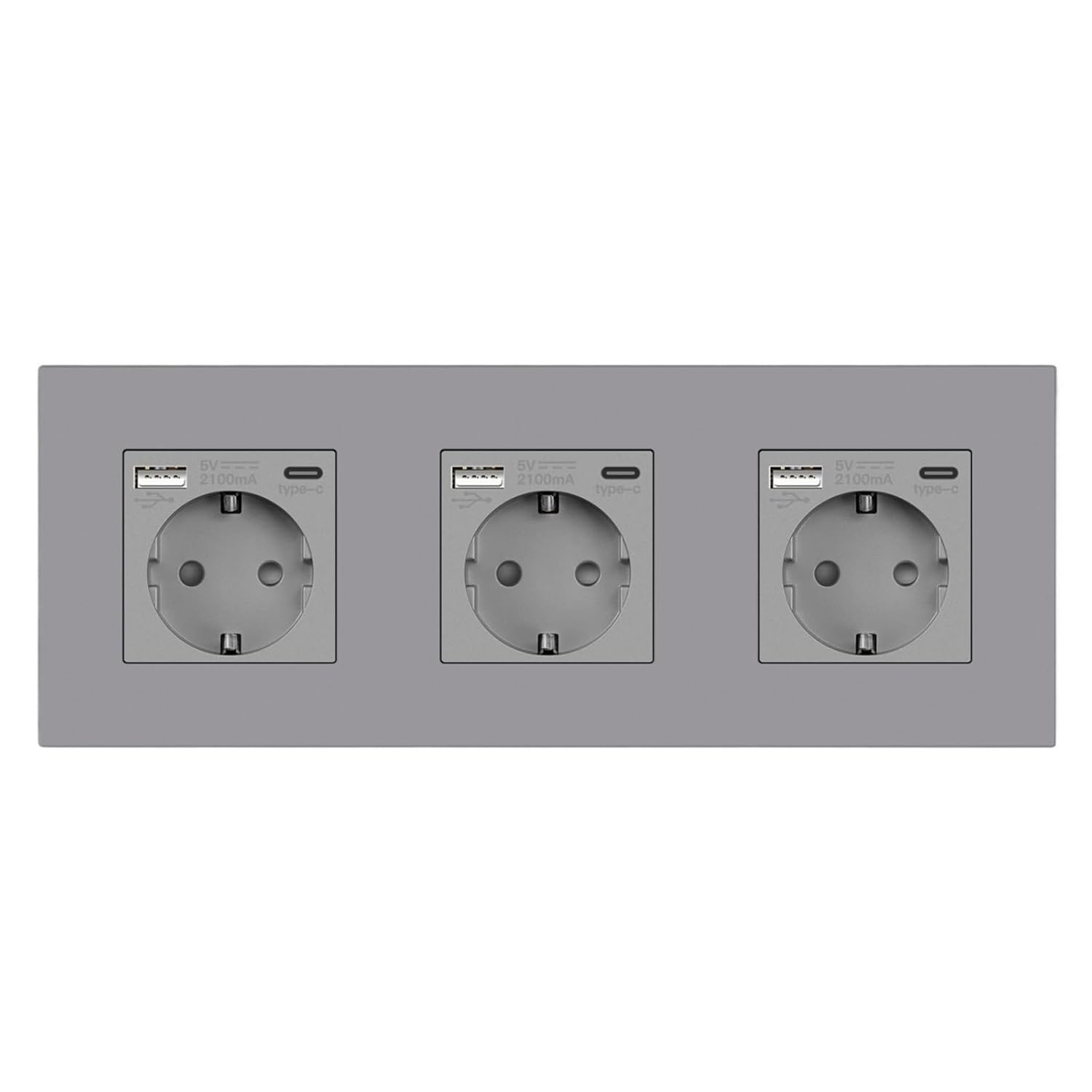 Standard Outlets==========Shape : RectangularRated Current : 16AApplication : Residential / General-PurposeOrigin : Mainland ChinaCertification : CE,FCC,RoHSSize : 86*86*35mmColor : GrayMaterial : PlasticMax. Voltage : 250VUSB Current : 2.1A (Double)USB Voltage : 5VType : EU Standard SocketWorking Temperature : -20-70Wire : Need Neutral WireInstall the screw hole distance : 60mmWall Box Type : Round & Square