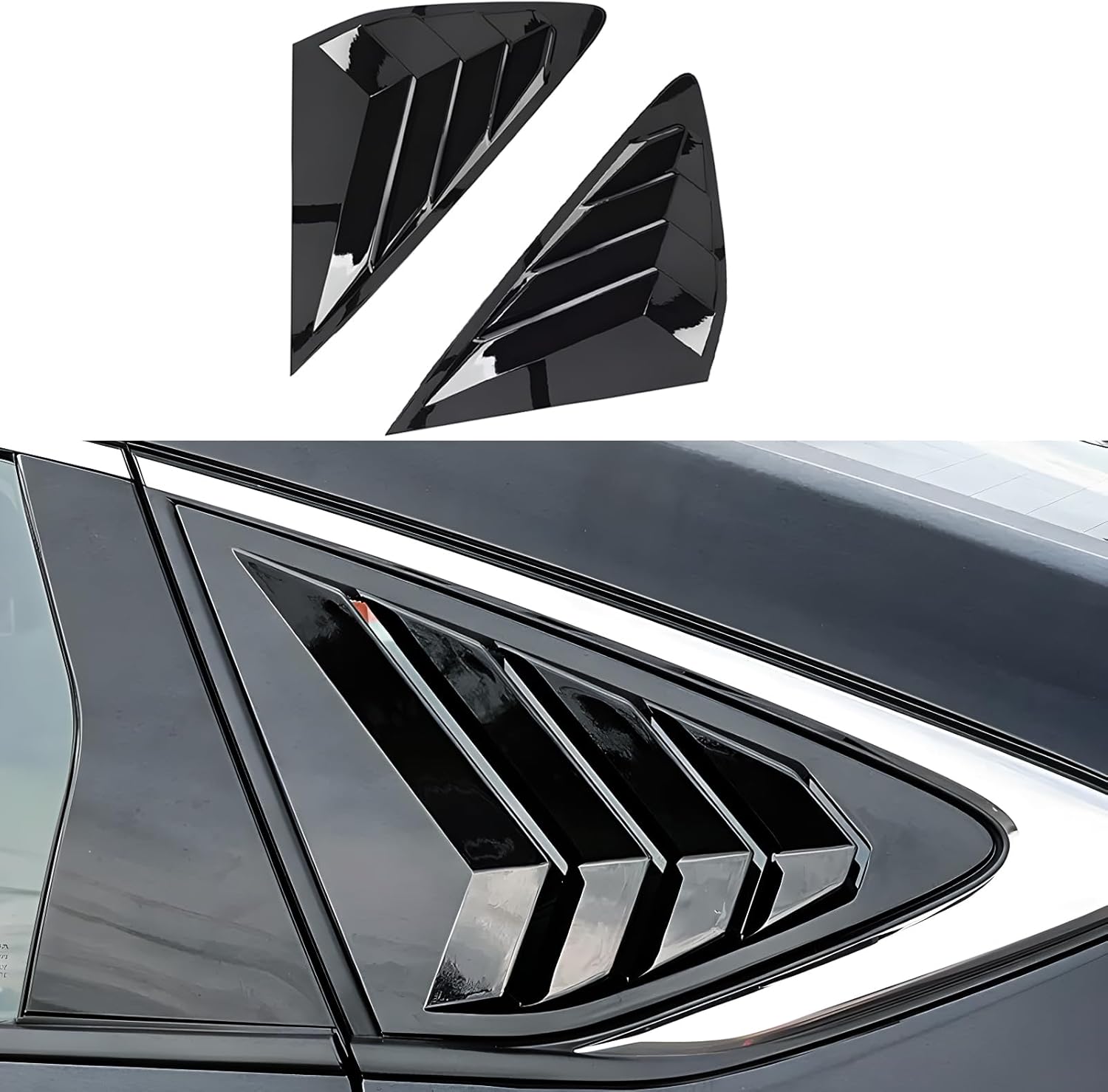 Features: 1,Made of high quality ABS Plastic,durable,Protect your car original part from scratches and abrasion. 2,Precise design, perfectly fit the car, add unique colors to the car, and make your car more sporty. Installation: 1,Determine the installation location, then compare the product and the installation location, and clean the surface to be pasted. 2,Tear off the tape on the back, align the position, paste it on the installation position, and then press hard, especially at the edge for at least 2 minutes. 3,Do not move the product or touch water within 48 hours of installation. Package Included: 2PCS Rear Side Window Louvers Cover Trim