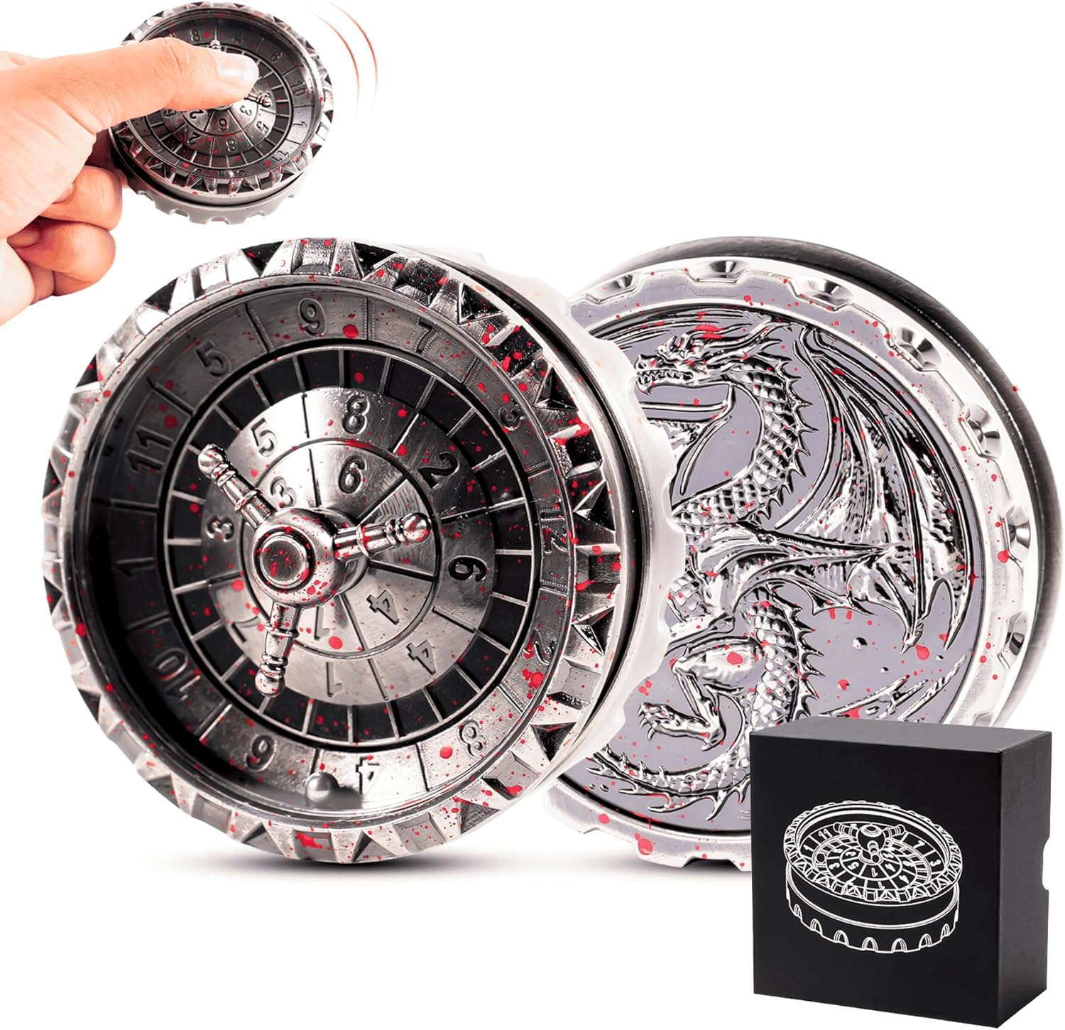 Froggod 7-in-2 DND Spinner Dice – Choose ONE Metal Spinner for Your RPG Adventure Upgrade your tabletop experience with a single versatile DND spinner dice—this listing is for ONE spinner, available in two unique styles: D20 Spinner: combines D20, D10, and D4 D12 Spinner: combines D12, D8, D6, and D100 Each spinner serves as a 3-in-1 or 4-in-1 mechanical dice, letting you roll multiple dice types with a single smooth spin. Buy one, or collect both to complete the full 7-dice coverage (D4–D100). Crafted from durable electroplated metal with a premium fingertip gyro mechanism, these dice spinners deliver fast, balanced, and fair spins—perfect for initiative rolls, damage rolls, loot tables, or quick combat decisions. A detailed 3D dragon engraving on the reverse side adds an epic fantasy touch, making it not just a gaming tool but a striking collectible. Whether you’re a DM seeking quick rolls or a player looking to streamline gameplay, the easy-to-read layout and fluid motion of this fidget-style DND spinner bring both function and fun to every session. Great gift for D&D players, dungeon masters, and dice collectors. Choose your spinner and let the adventure begin!