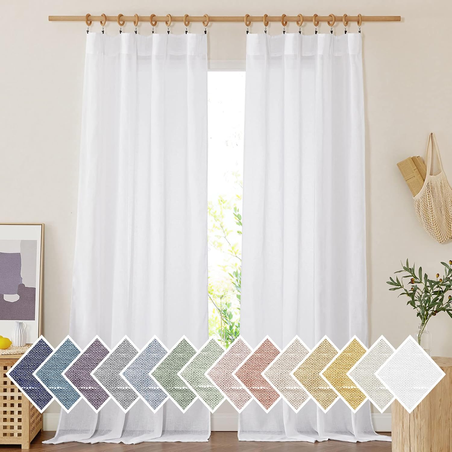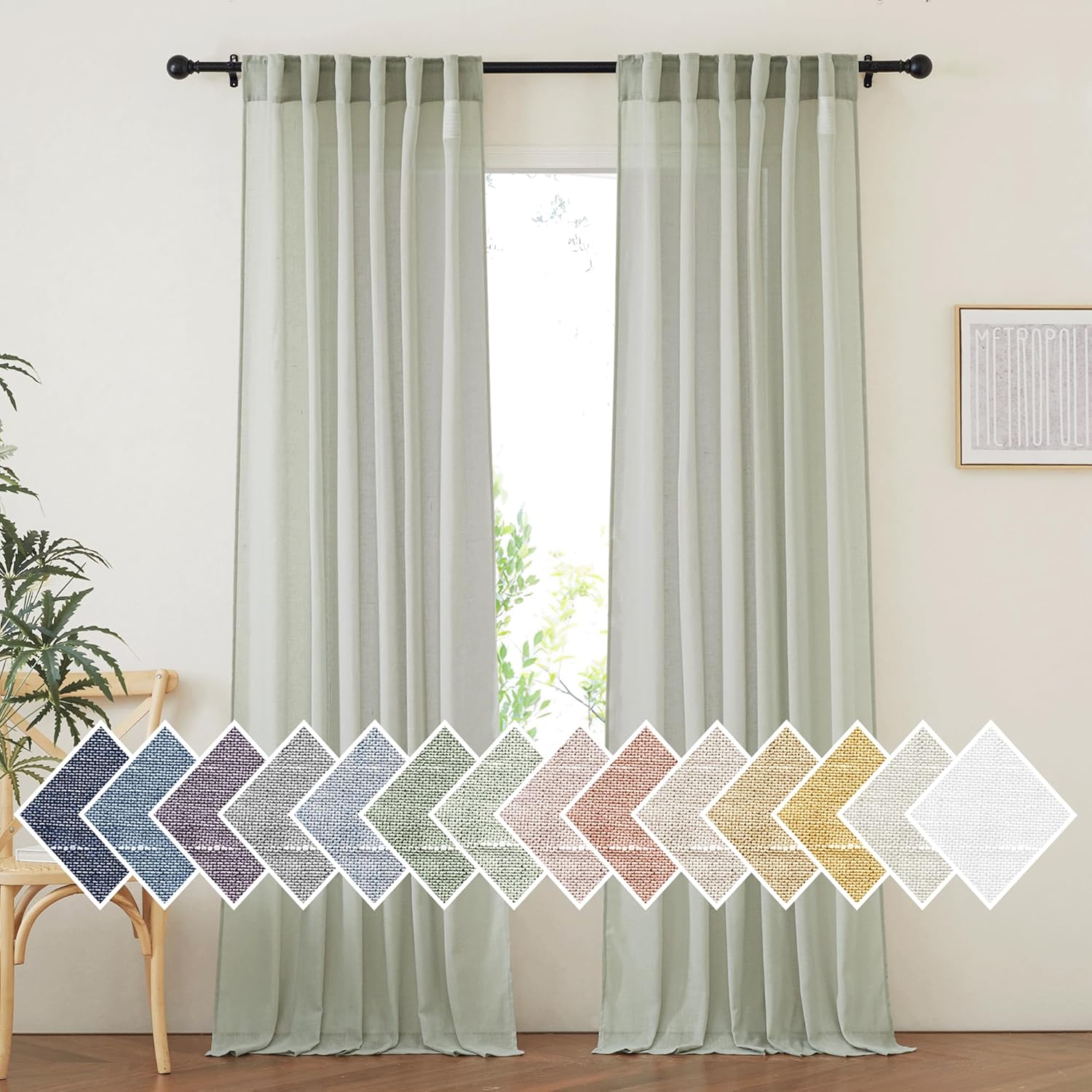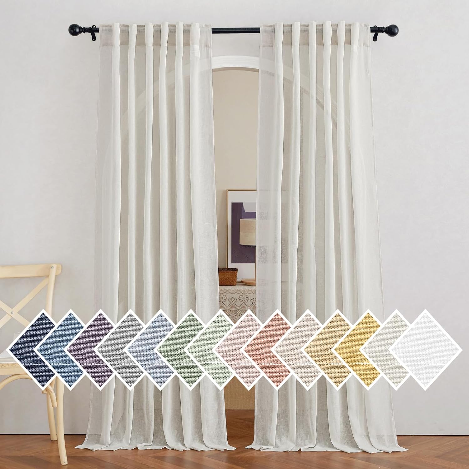 Do you want a curtain that can refresh your home decor? Then NICETOWN natural linen Blend Faux flax sheer curtain will satisfy your need.NICE CHOICE:Made by hand and made of high-quality fabric makes the curtains long-lasting. More size choice for you selects to match your window. Each package includes 2 panels linen curtains. Elegant color can match any color of blackout curtains well. Each panel has 1.9" Diam Rod Pocket which can fit the most size rods in the market.The curtain material is soft and environmentally friendly, make a quiet natural look to your windows and rooms. PERFORMANCE:Linen textured fabric is much thicker than normal sheer, which helps you get rid of the curious sights from outside and protect your privacy better. So you can enjoy the happy time with your family.Reduce a part of strong sunlight and UV rays to protect your furniture and artworks. Formaldehyde-free, they can be used in the nursery, children's bedroom, living room, study room, and other places where you want privacy but still with light filter.WASHING TIPS:1. This Linen Look sheer French Door Curtain is easy to care by Machine Wash in cold water and Tumble Dry.2. Quick ironing or steam clean if it is necessary. Do not bleach.NOTE: Due to different screen displays, the color of the actual item may vary slightly from the above images.