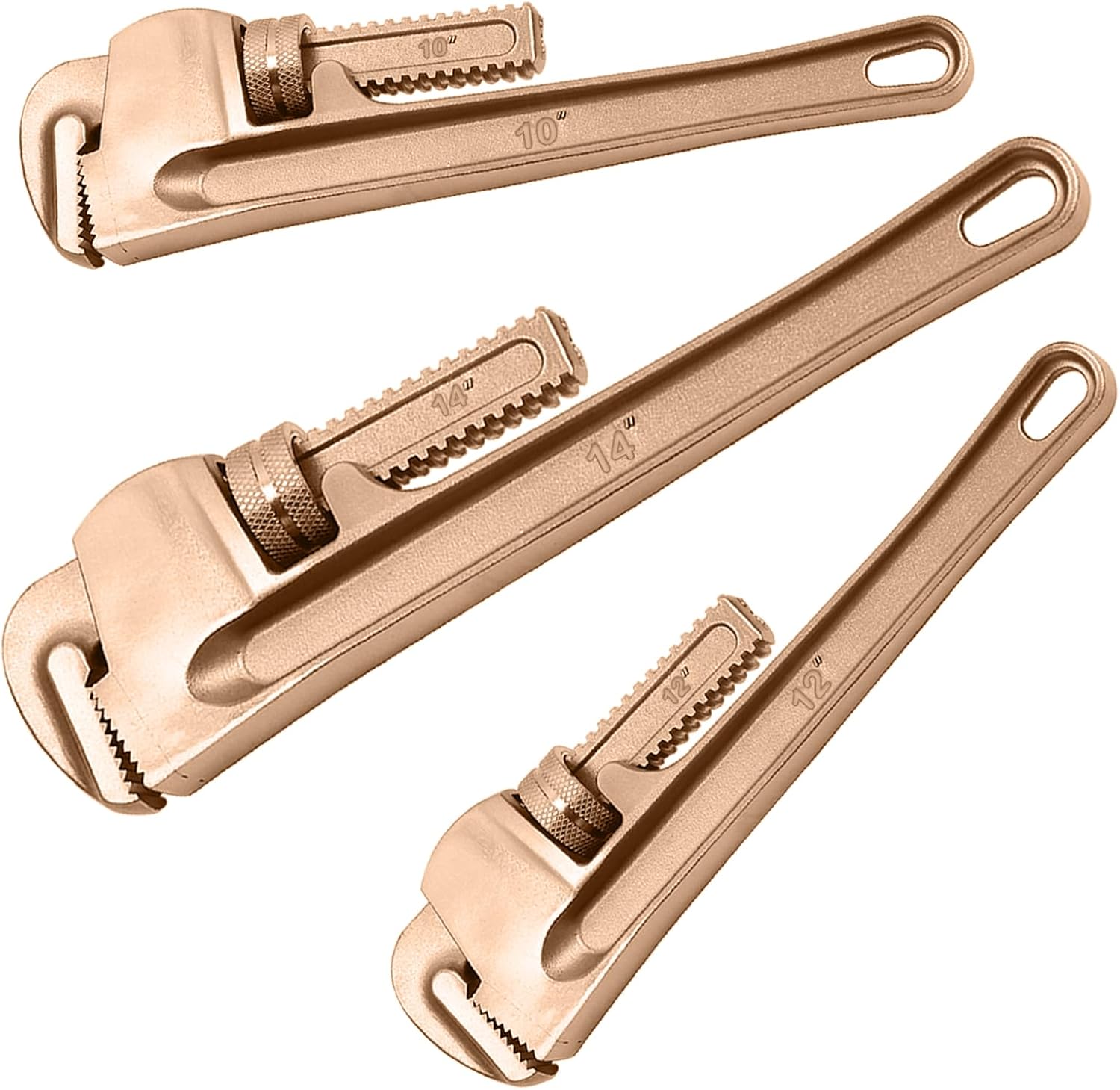 The WEDO Non-Sparking Pipe Wrench is a professionally certified tool designed for critical maintenance tasks where safety cannot be compromised. Forged from specialist aluminum bronze alloy and built to exacting international standards, it provides a reliable, spark-free solution for working on pipe fittings and assemblies in potentially explosive atmospheres.Safety is engineered into its core. The wrench is constructed from aluminum bronze, a non-ferrous metal chosen for its inherent low sparking characteristics. This critical safety feature is validated by compliance with authoritative BAM, FM, and DIN standards, offering verified assurance for use in environments containing flammable substances such as those found in petrochemical plants, refineries, gas pipelines, and mining operations.Performance matches its safety credentials. The wrench is manufactured using a precision die-forging process that aligns with DIN specifications, ensuring a robust build with reliable mechanical strength and grip. The adjustable jaw provides a secure hold on various pipe diameters, while the corrosion-resistant nature of aluminum bronze aids longevity in harsh industrial conditions. The ergonomic handle is designed for effective leverage and user control.As an indispensable tool for engineers, technicians, and safety-conscious maintenance teams, it enables essential pipe installation, adjustment, and disassembly work to proceed with enhanced hazard mitigation. Choosing the WEDO Non-Sparking Pipe Wrench means investing in a professionally recognised tool that prioritises personnel safety and asset protection in the world's most demanding industrial workplaces.